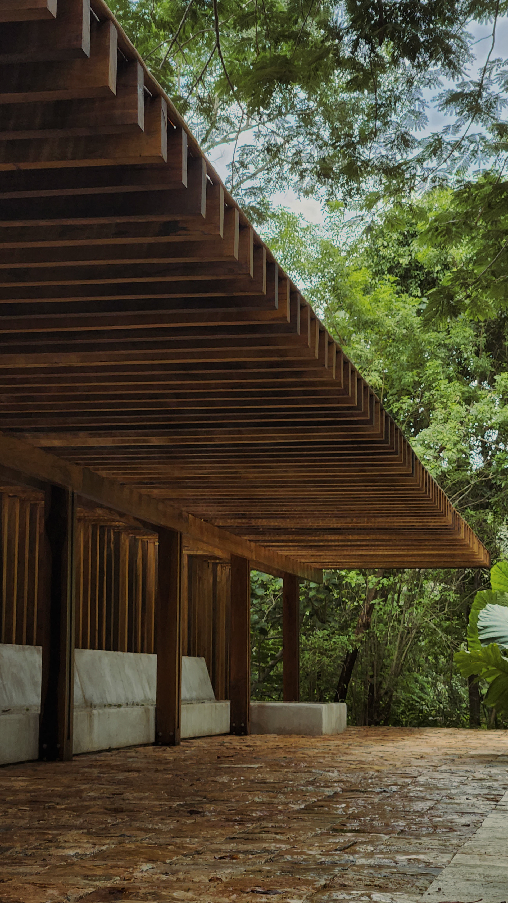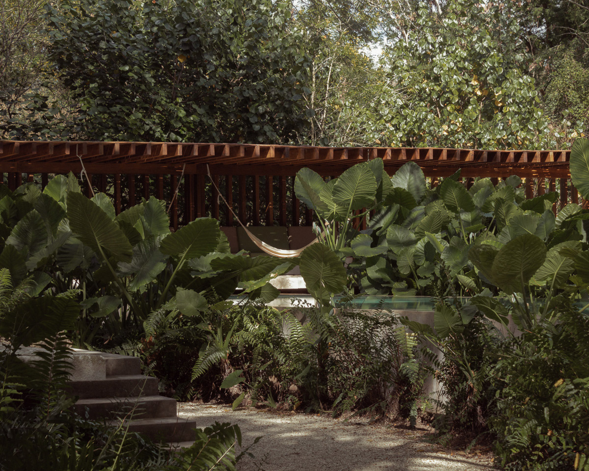 materiales como madera, piedra y vegetación dentro de